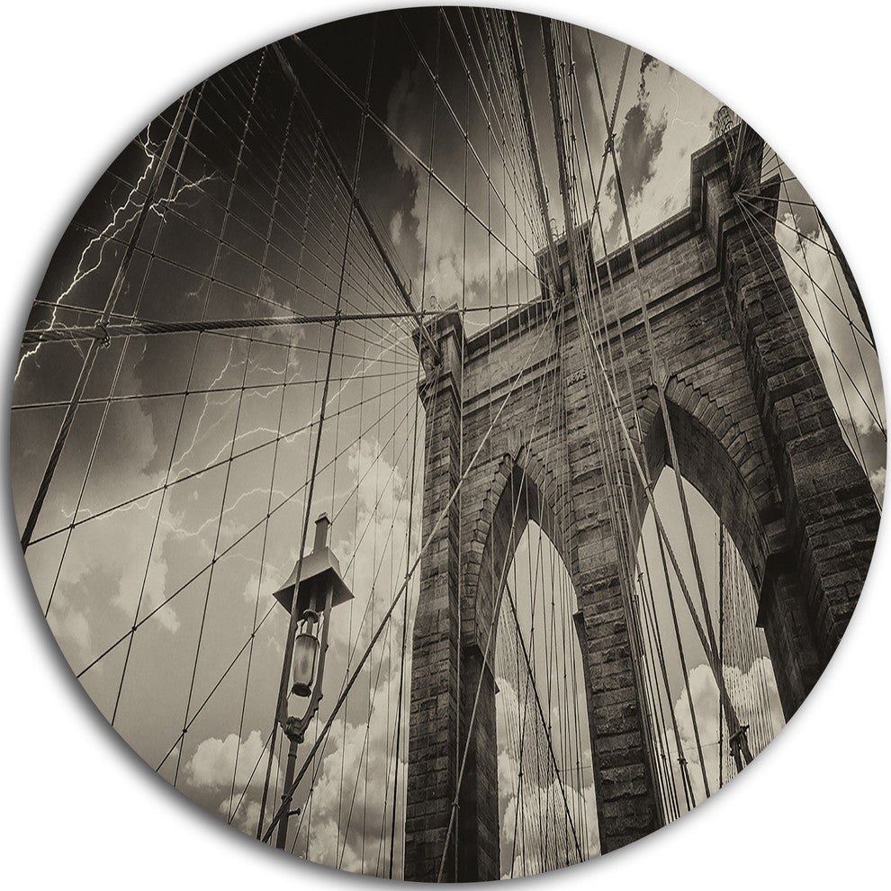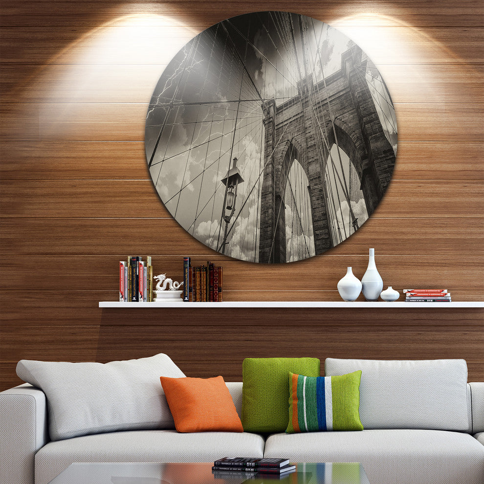 Bring Contemporary Abstraction to your home with this large Circle Metal wall art. This Upward View of Brooklyn Bridge Metal Artwork makes it the focal point of any room or office.