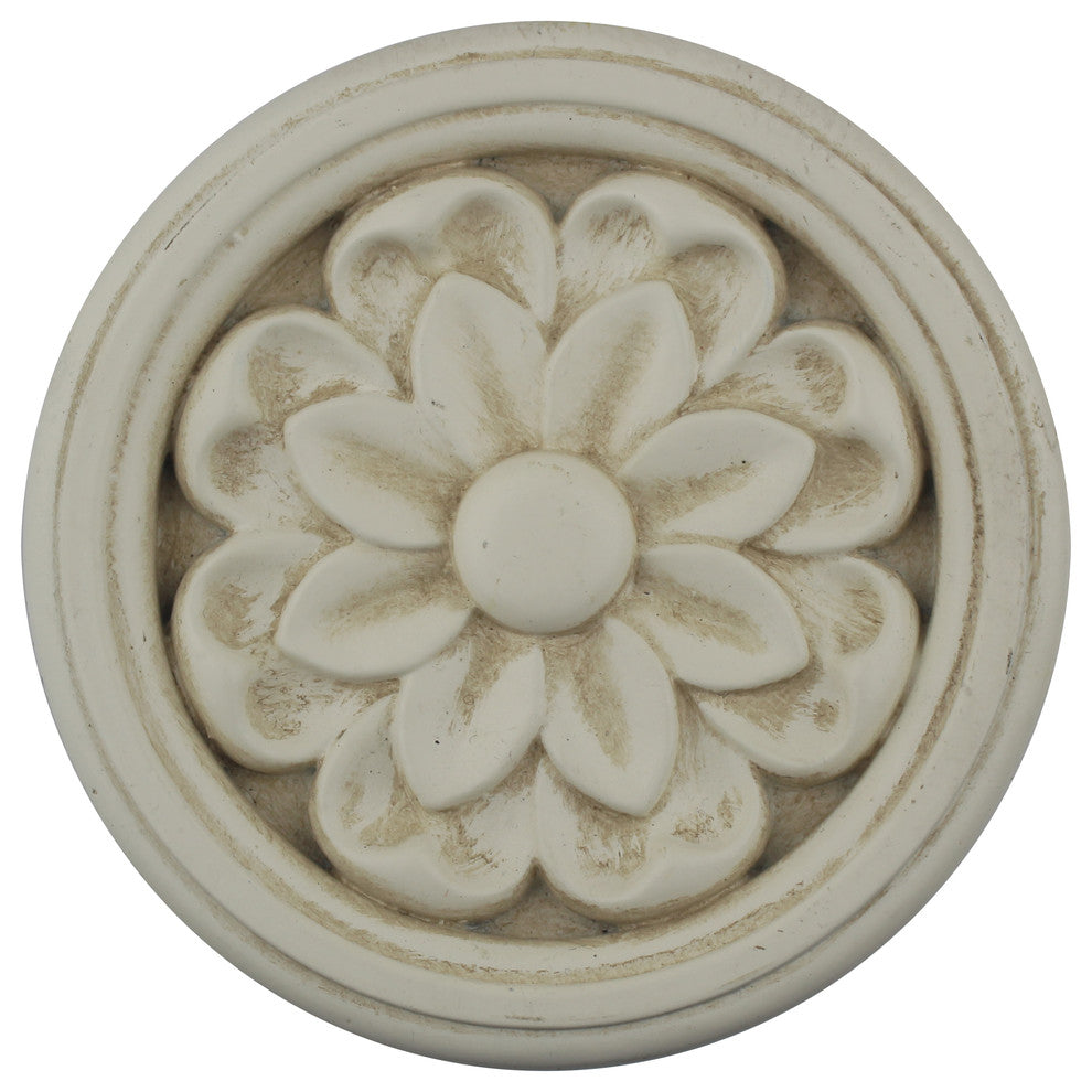 Urbanest window drapery medallion holdback.Medallion measures 3 3/8" in diameter; base measeures 2 1/8" in diameter. Projection from wall measures 4 1/4".Available in 5 finishes: Renaissance Gold, Burnt Gold, Ivory, English Pewter, and MahoganyOur drapery medallion holdbacks can be used as a traditional holdback. They can also be used instead of a curtain rod to attach a curtain valance or curtain panel to the wall.List price is for two holdbacks.
