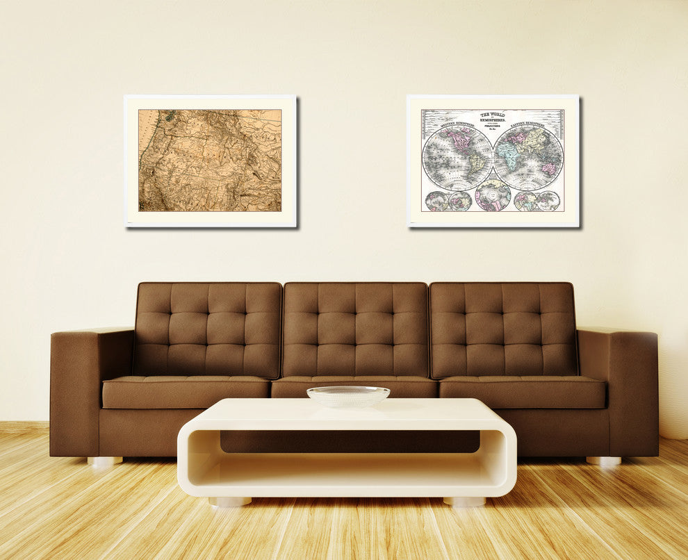 US Pacific Northwest Old Map Print On Canvas With Frame Art Collection 16" X 21"