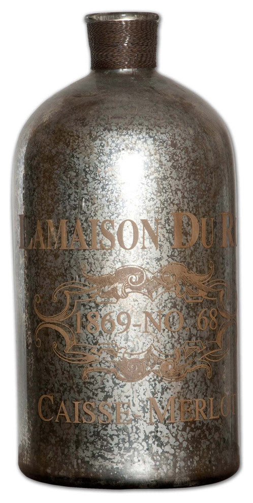 Silver Mercury Style Glass With Brass Wire Accents. Additional Product Information: Collection: Lamaison Size (inches): 8.5Lx8.5Wx18H Item Weight (lbs): 6.5 Frame Finish: Silver Mercury Style Glass With Brass Wire Accents. Material: Glass Country: India