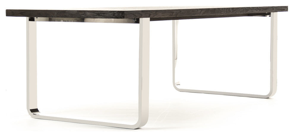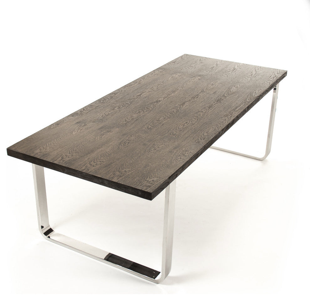 Feast with friends and family around the Valor Dining Table. This rectangular dining table is made from oak wood in a antique-brown hue, while its steel legs stand out in chrome finish.Dining tableColor: Antique brown and chromeMaterials: Oak and steelDimensions: W 31" x D 95" x H 40"