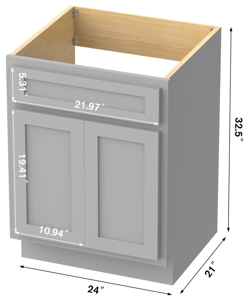 Set the foundation for a stylish bathroom design with this vanity base cabinet by Vanity Art.Vanity base cabinetDoes not include top, sink, faucetSoft-closing doors1-year parts warranty against manufacturer defectsFinish: GrayMaterials: Birch, plywoodDimensions: W 24" x D 21" x H 32.5"