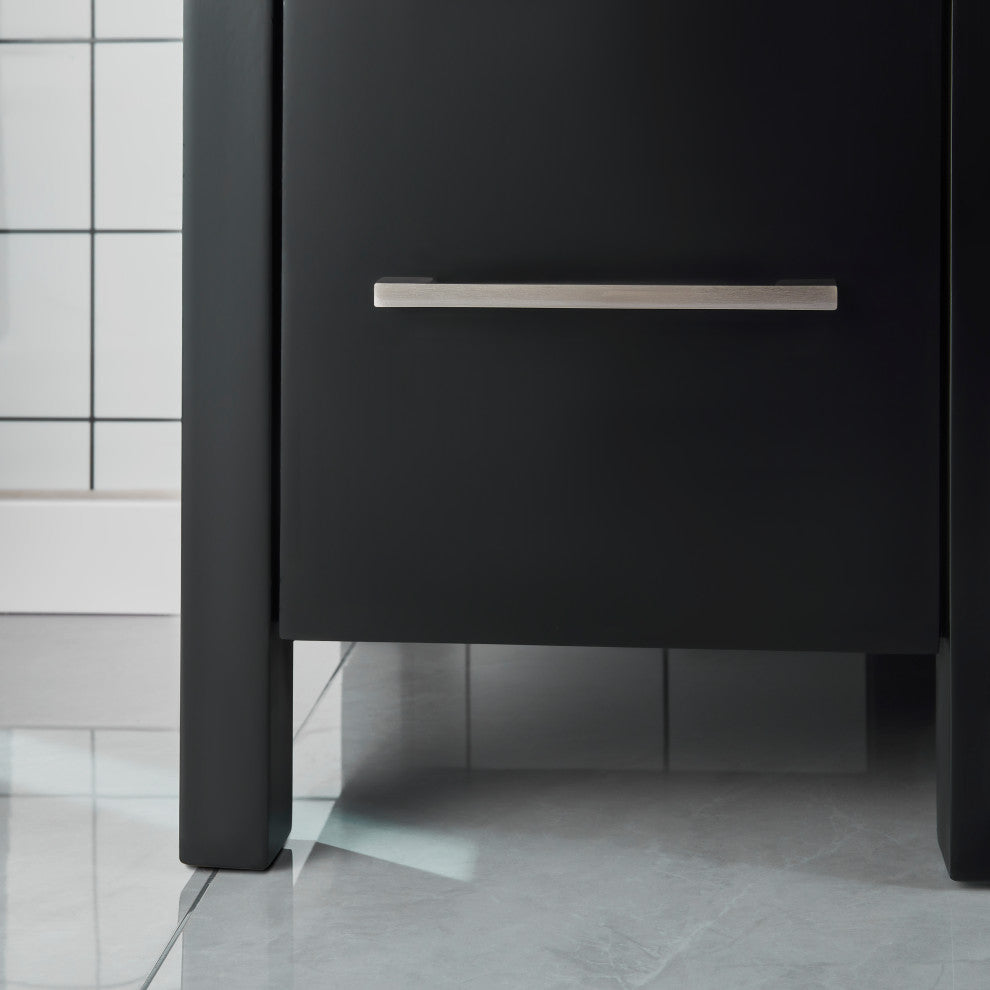 Let the clean-lined look of this vanity by Vanity Art guide your bathroom toward a cool, contemporary design. Single-sink vanity set with 24" vanity and two 12" cabinetsIncludes mirror, countertop, sink basin, and cabinet hardwareDoes not include a faucetCeramic countertopSoft-closing doorsDove-tailed drawersBrushed gold and brushed nickel handles/hardware1-year parts warranty against manufacture defectsColor: Espresso, Gray, White, BlueMaterials: Solid + Manufactured Wood, MirrorMirror dimensions: W 23" x H 27.5"Cabinet dimensions: W 12" x D 18" x H 31"Vanity dimensions: W 24" x D 18" x H 35.8"Total dimensions: W 48" x D 18" x H 35.8"