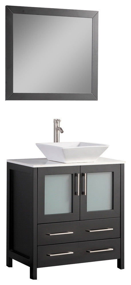 Vanity Art Vanity Set With Vessel Sink, Espresso, 30", Standard Mirror