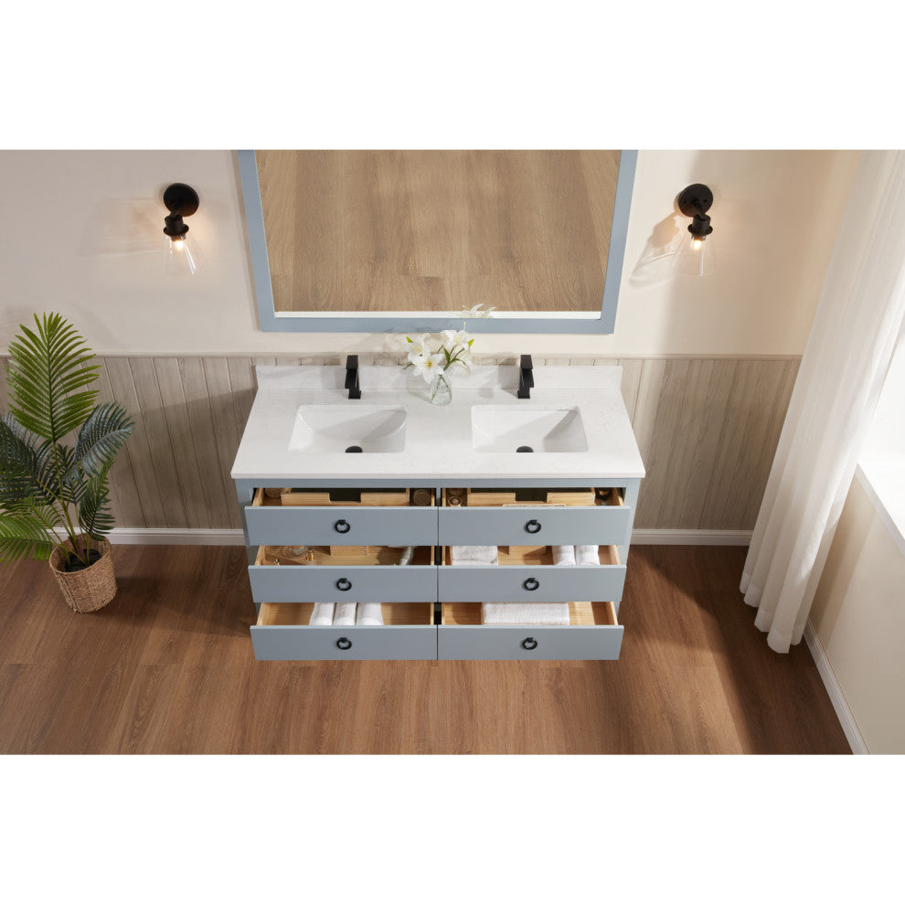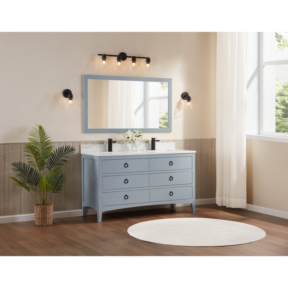 Vanity With Mirror, Sconce and Faucet Included, Cadet, 60"