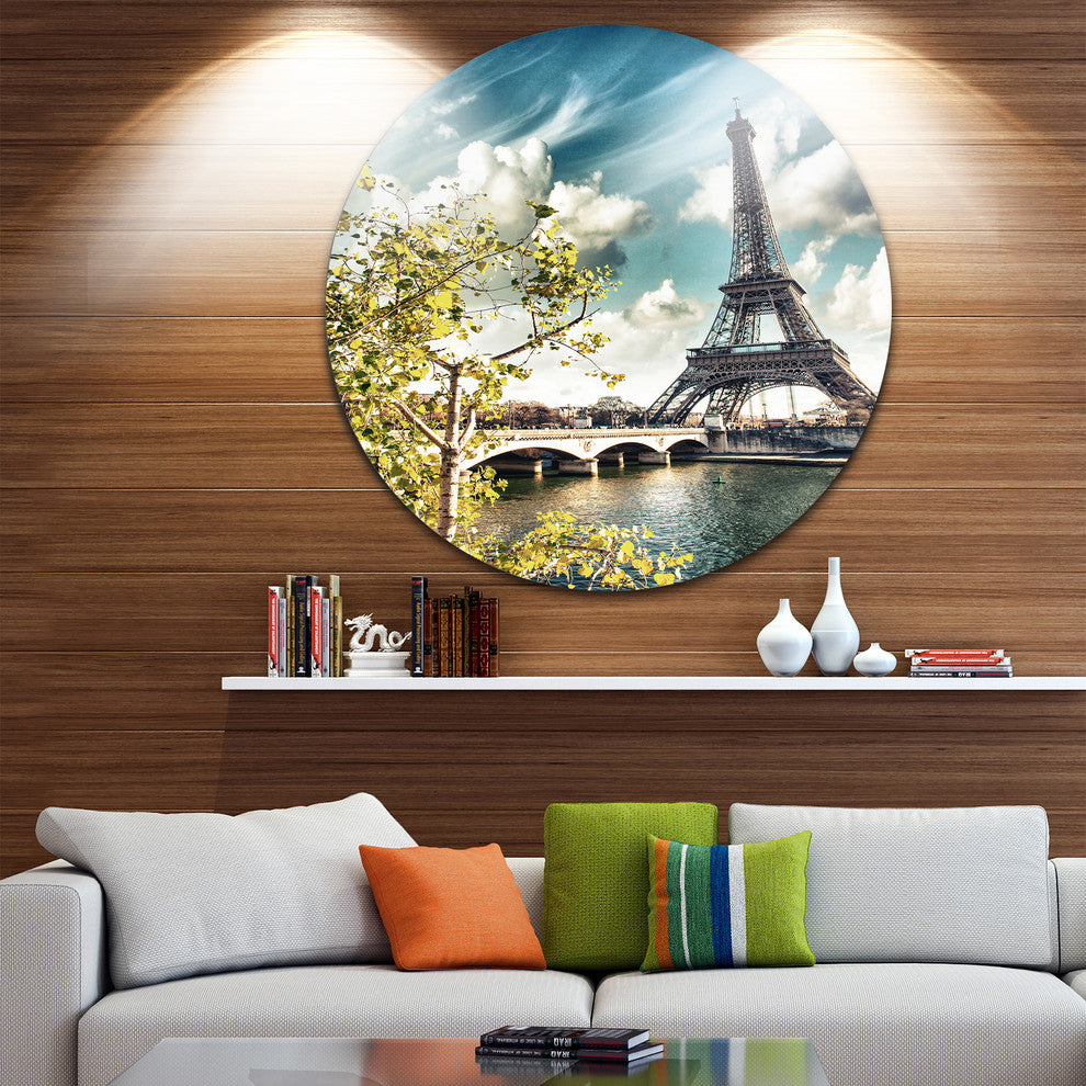 Bring Contemporary Abstraction to your home with this large Circle Metal wall art. This Vegetation Near Eiffel Tower Metal Artwork makes it the focal point of any room or office.