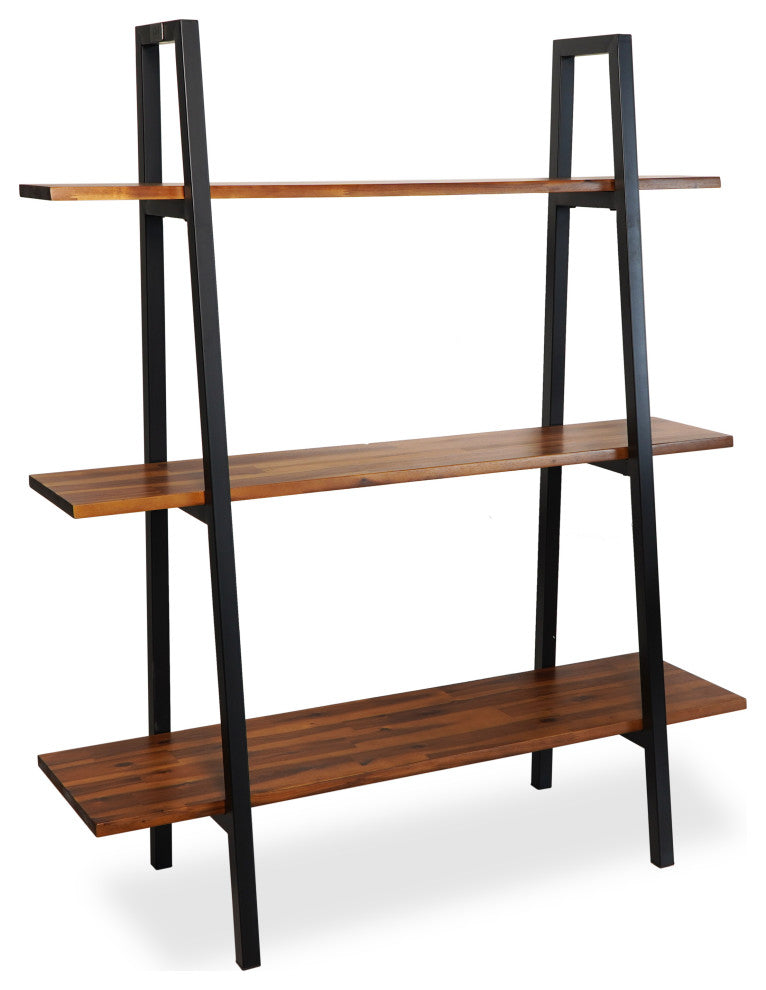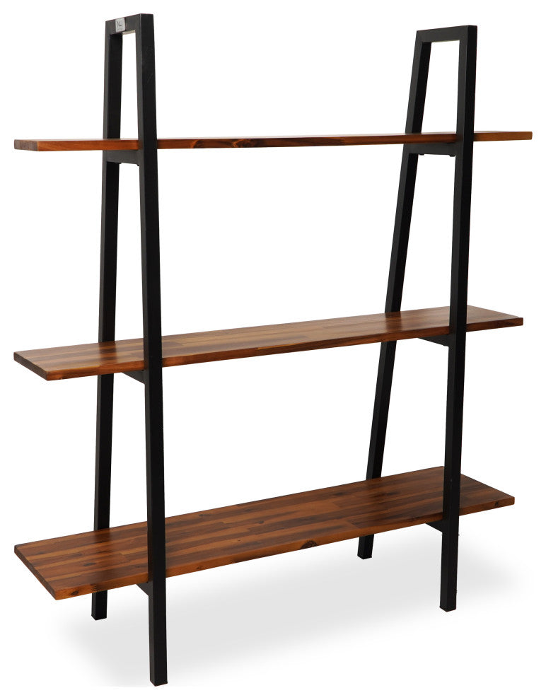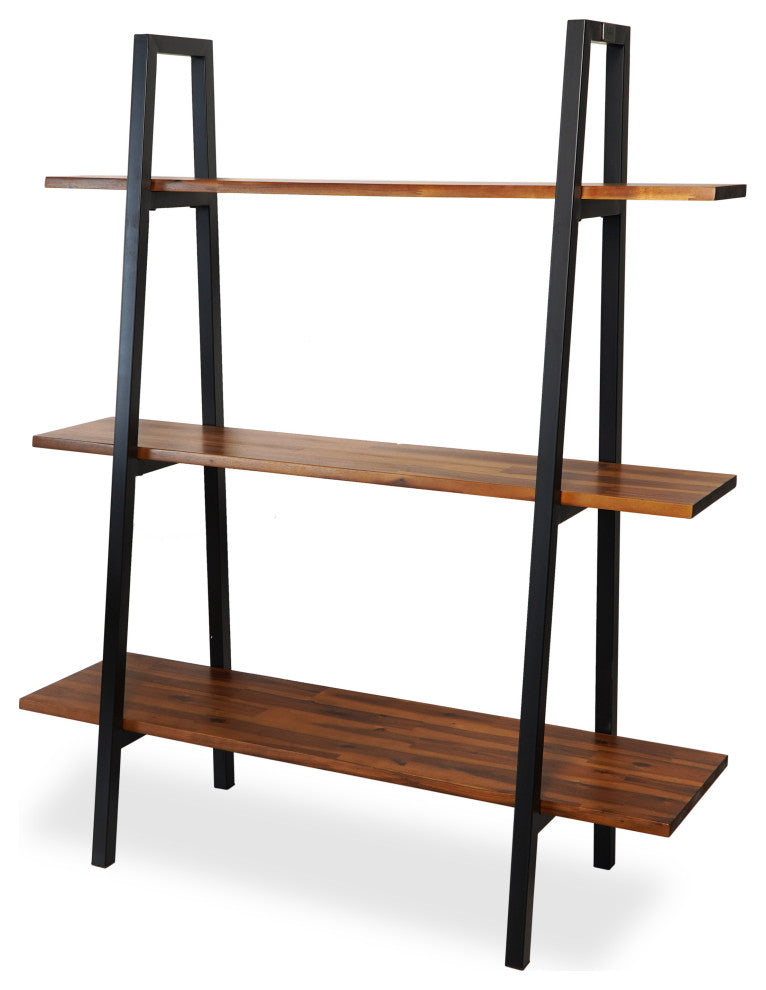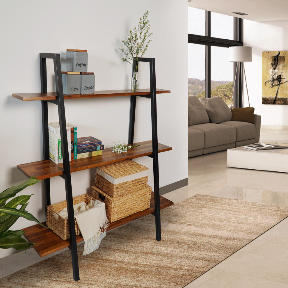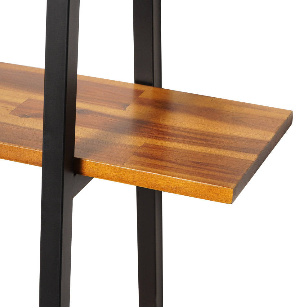 The perfect combinations between the warm dark brown color and singular A shape give the acacia wood bookshelf a gorgeous and modish appearance. With handy 3 tiers, you will get a large space to store books, decorative items, or anything else you need to keep organized. The strong steel frame is powder-coated, ensuring stability. The vintage design and high-quality materials make this bookcase a perfect addition to any home or office space