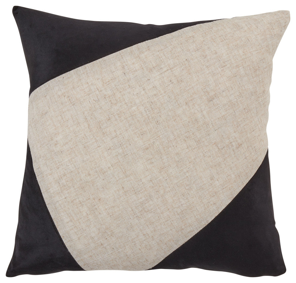 Velvet Throw Pillow With Geometric Design, Black, 18"x18", Poly Filled