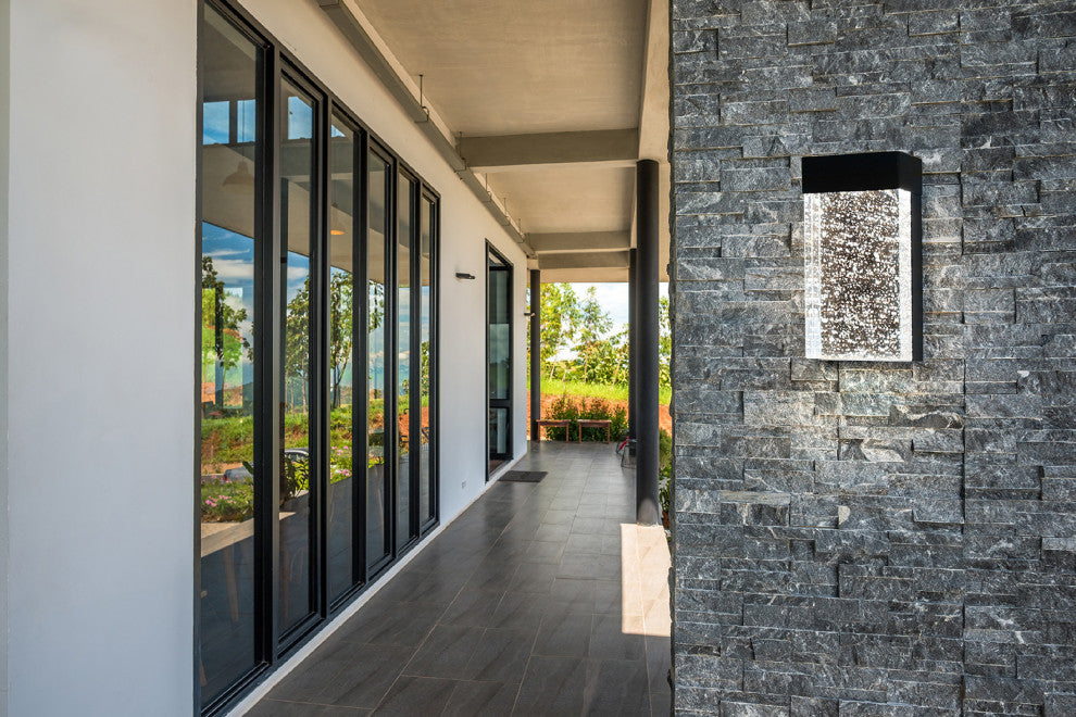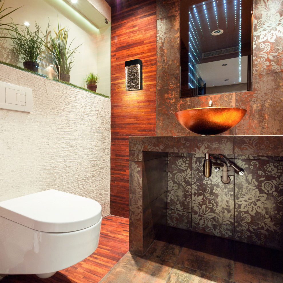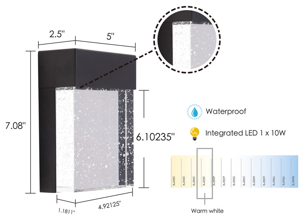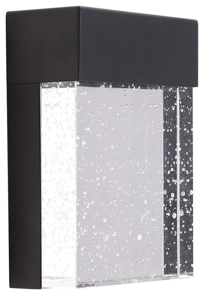 The 7 inch Venecia 1-Light LED outdoor wall light by Eglo is sleek and stylish. Its black matte finish and clear seeded glass offer an elegant look for the outdoors. The integrated LED illuminates from behind the glass which creates an ambient shine. Crafted in stainless steel and glass, this wall sconce is sturdy and long-lasting. The boxy style of the light is complemented by the textural glass element, making this a balanced, distinctive design. This wall light is the perfect bright light for outside the home or garage.