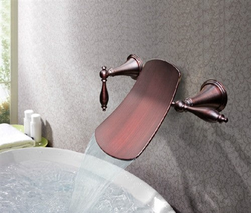 The Venetian Waterfall style Bathroom Sink Faucet is modern in look and feel and comes in oil rubbed bronze finish. Its brass construction gives it lifetime durability adding to style to any bathroom decor. The Venetian faucet comes with two long handles, and three installation holes. This Wall Mount Faucet is priced for a bargain.