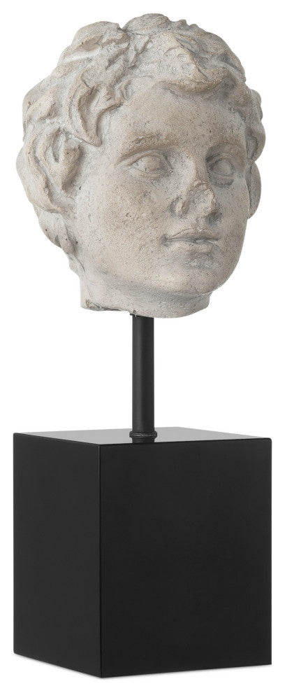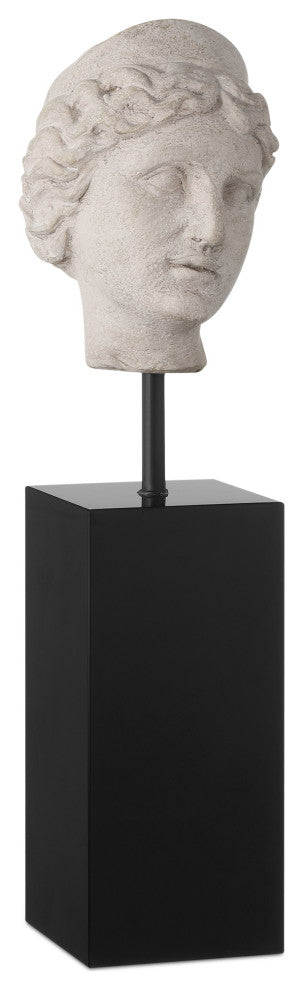 The Venus Head on Stand Set is two sculptures that look as if they were carved from stone ions ago, though they are actually made of composite in an artisanal mix of beige and pale gray finishes. Mounted on blocks of black optic crystal in varying heights, these sculptures look like museum-quality artifacts.