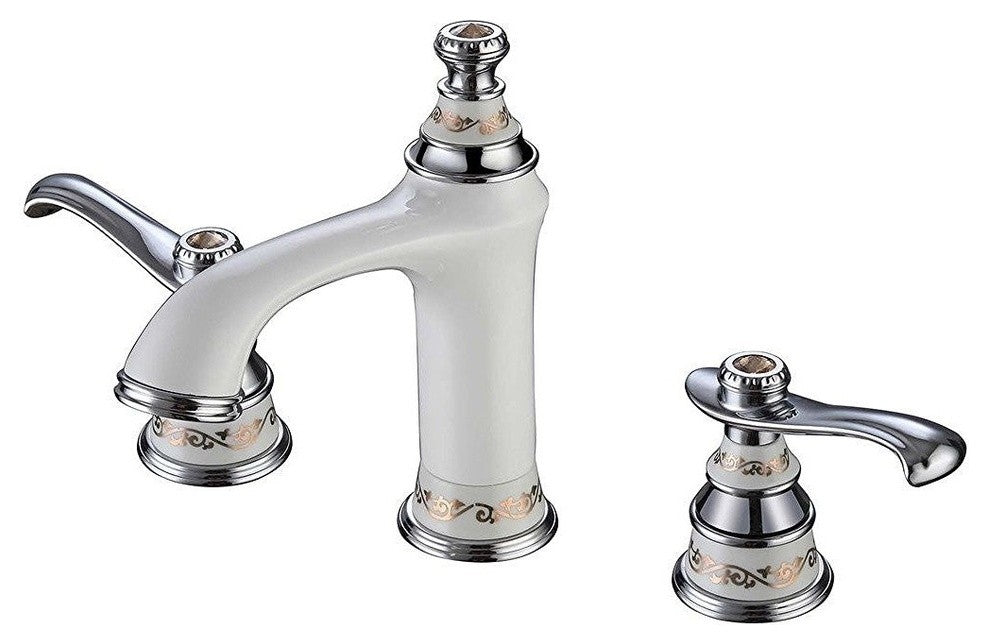 Vernon Deck Mounted Dual Handle Bathroom Sink Faucet, White and Chrome