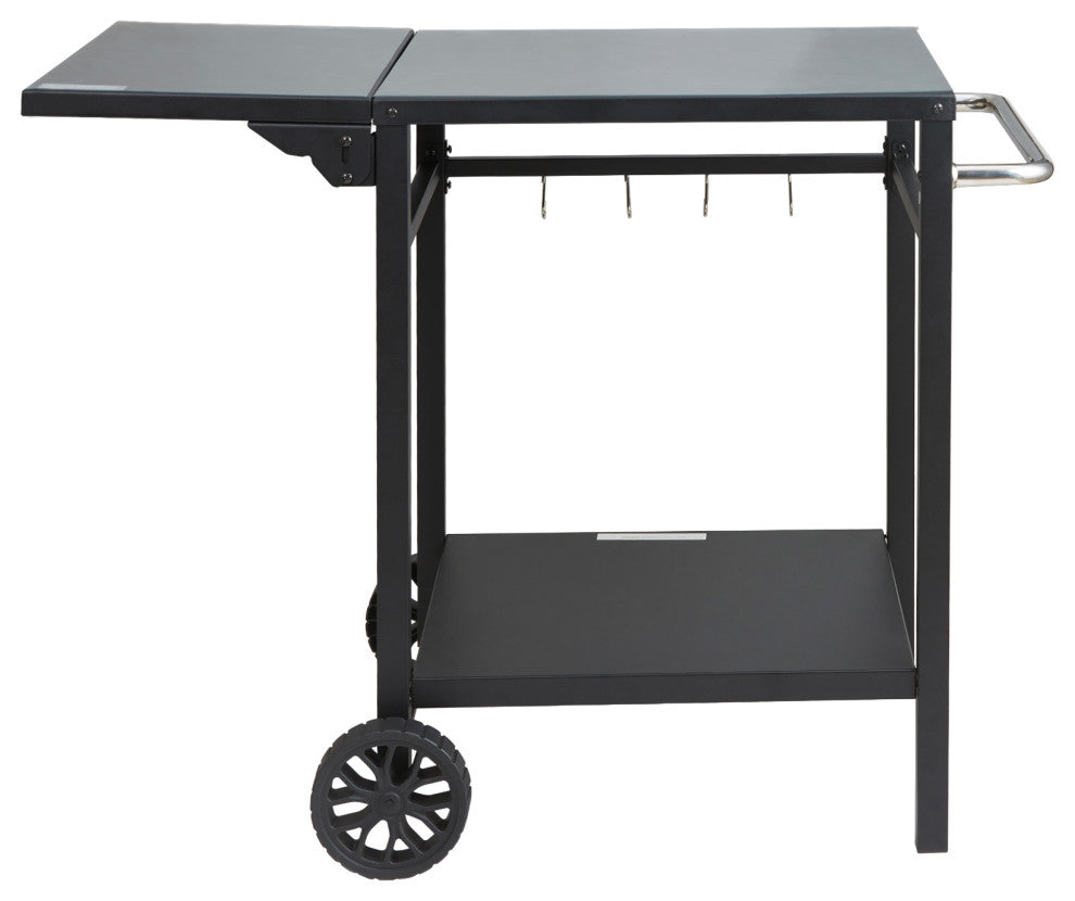 Double-layered Shelves and Abundant Accessories: The double-layered shelf structure is designed to provide sufficient storage space for your pizza oven, firewood, barbecue grill, or cooking equipment. Portable modular cart is equipped with 4 hooks that can be used to hang kitchen accessories and various tools. It also comes with a PVC table mat to reduce scratches on the tabletop during use.