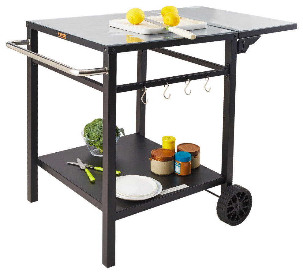 VEVOR Outdoor Grill Dining Cart Double-Shelf BBQ Movable Food Prep Trolley Patio