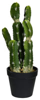 This maintenance free Green Potted Cactus measures 14 inches. This Green Cactus plant comes in a plain black pot that can blend in with any style or placed into a decorative container of your choice. The Planters Pot is 4.5 inches high by 5 inches wide by 5 inches deep.