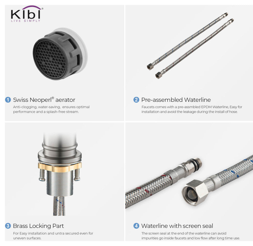 FEATURESSOLID BRASS construction to resist rust, corrosion, and tarnish.LEAD-FREE approved for safe and healthy use.Top quality CITEC BRAND CERAMIC CARTRIDGE guarantees long lasting and leaking free.SWISS NEOPERL AERATOR ensures perfect water flow and environment friendly.Maximum 1.5 GPM (gallons per minute) water flow rate.HIGH ARC faucet spout ensures enough space for washing hands and clean.Single handle ergonomics design for easy temperature and water flow control.EPDM 24"? pre-assembled waterline ensure easy installation and healthy usage.BRASS fixing parting for easy installation and ultra secure even for uneven surfaces.LIMITED LIFETIME WARRANTY with top level customer service.