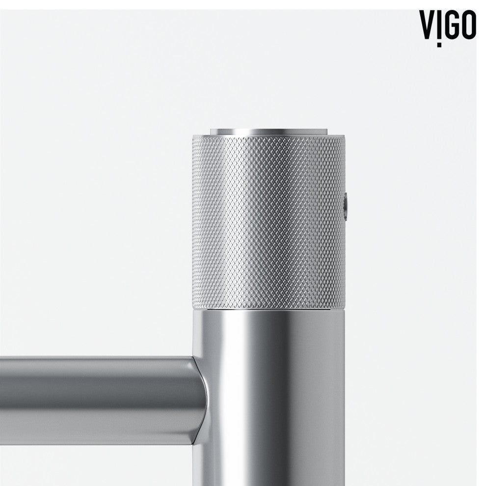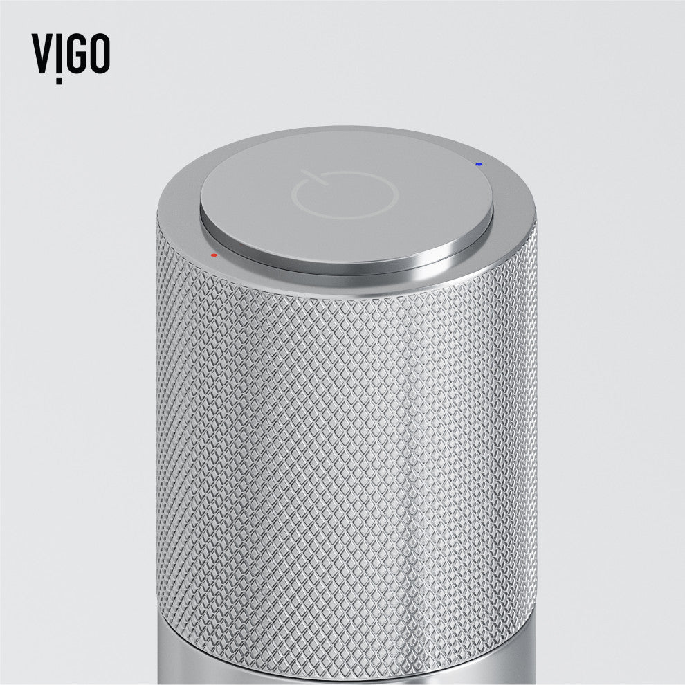 Introduce classic design into your modern bathroom with The Apollo vessel bathroom faucet from VIGO. The curved, high-arc spout features diamond knurling details and ensures plenty of space for hand-washing. The single-handle faucet features a uniquely designed push button that delivers ample water flow and the elegant knob easily turns to adjust the temperature. Tall and statuesque, this vessel sink faucet will quickly elevate your vanity as the modern faucet installs within minutes.Features:Single-hole installation for use with any vessel sink;EZInstall™ makes DIY installation quick and easy without the use of putty;EternalSeal™ is an expertly tested ceramic cartridge that prevents leaks and dripping;FinishPlated™ ensures that the hardware finish is consistent throughout the entire sink faucet;Pop-up drain in matching finish sold separately.Measurements:Spout height: 7.375";Spout reach: 6.125";Faucet height: 11.5";Standard US plumbing â…œ" connections;Standard 1 â…œ" diameter opening is required for this faucet.Details:Eco-friendly 1.2 GPM flow rate;Single handle with push to start button;Built from lead-free solid brass construction;Water pressure tested for industry standard;Sedal ceramic disc cartridge tested for 500,000 uses;Nozzle resists mineral buildup and is easy to clean;A premium finish is coated in 7 layers to resist rust, corrosion, and tarnishing;All mounting hardware and hot/cold water lines included.Certifications&Warranty:cUPC, NSF-61, AB1953, and WaterSense certified by IAPMO;All VIGO bathroom faucets have a Limited Lifetime Warranty.