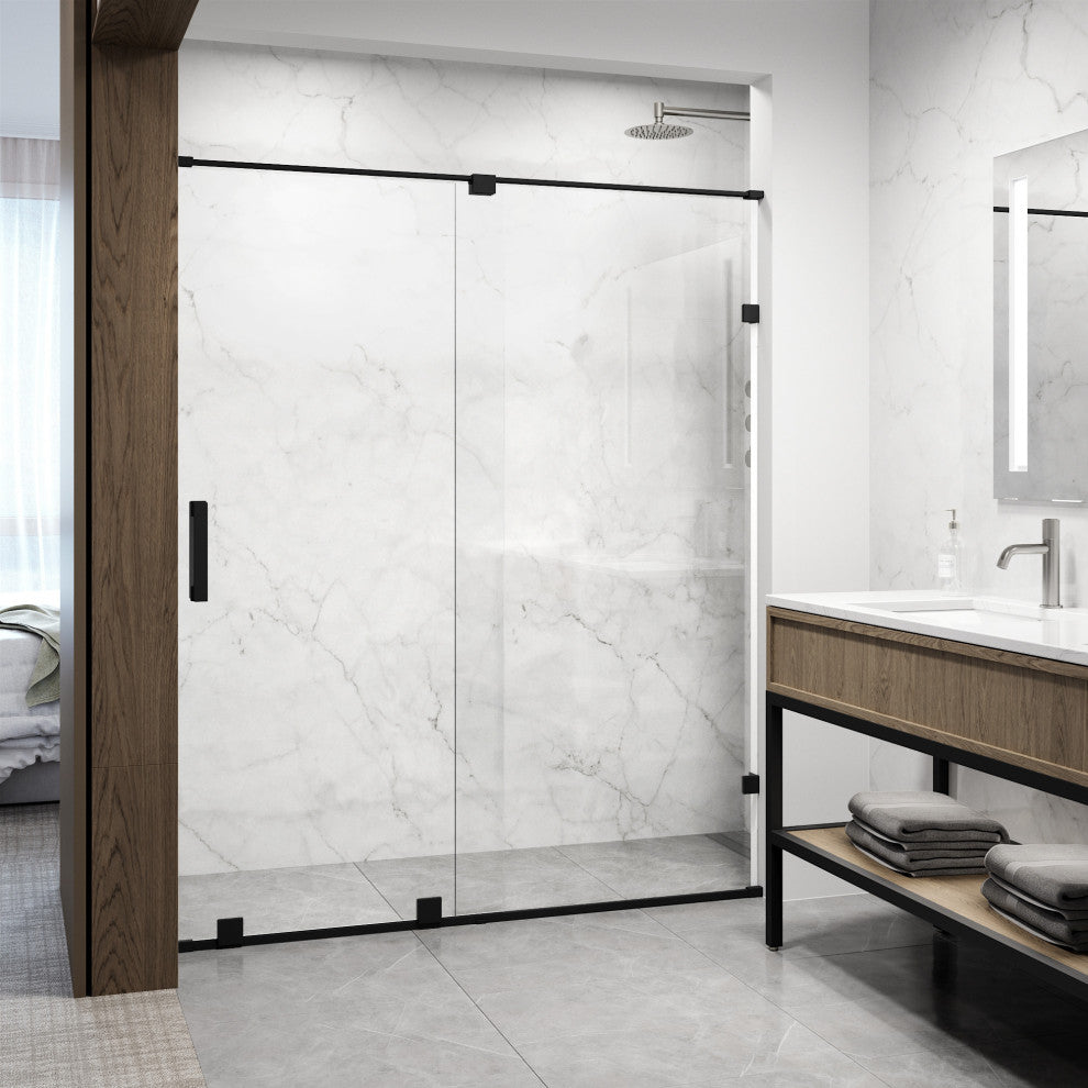 VIGO Ryland 58" to 60" W x 73" H Frameless Track Sliding Shower Door, Matte Black, Clear Glass