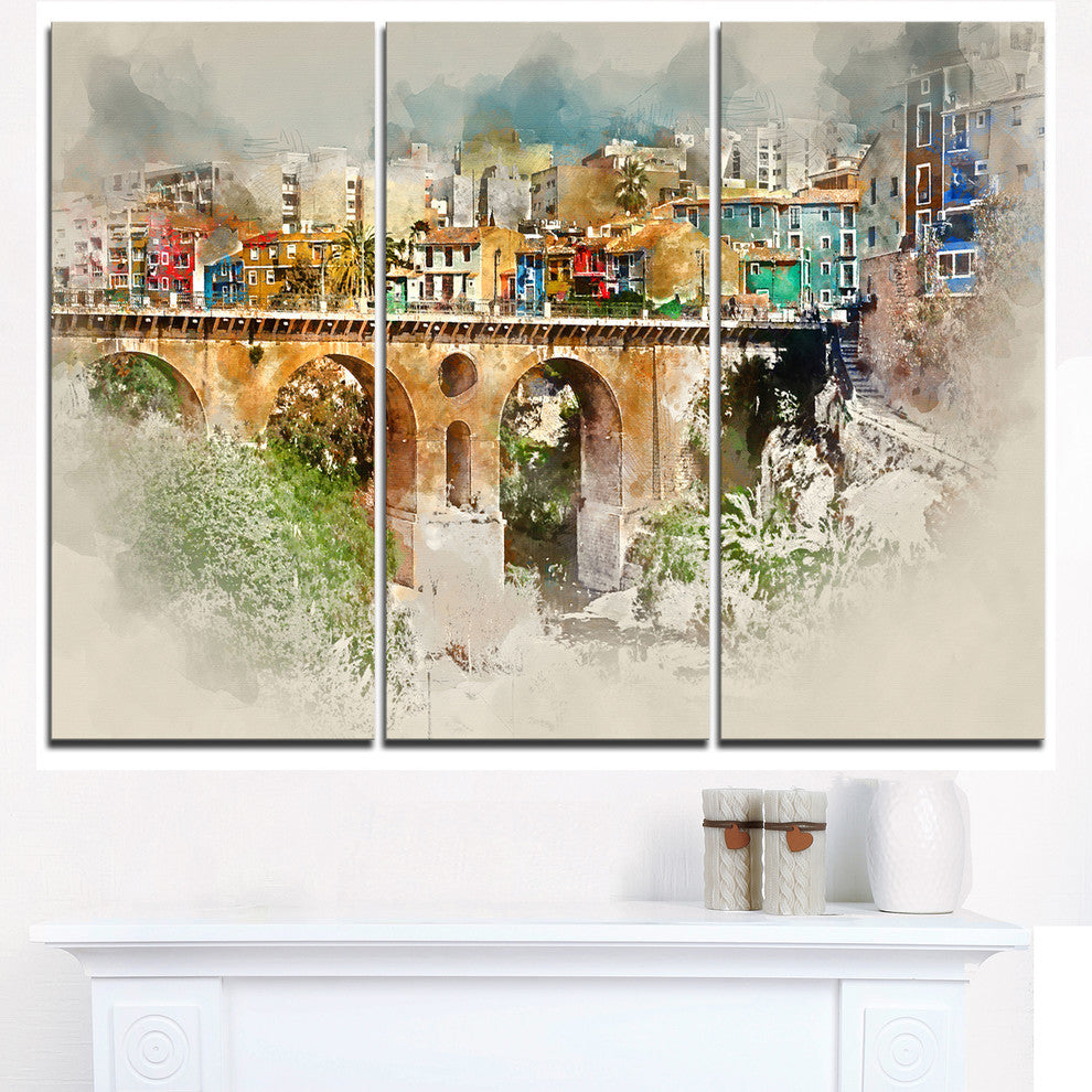 "Villajoyosa City Digital Art Bridge" Metal Wall Art, 3 Panels, 36"x28"