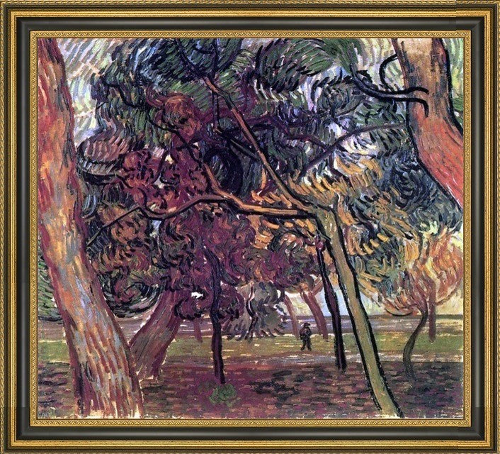 20" x 25" Vincent Van Gogh Study of Pine Trees framed premium canvas print reproduced to meet museum quality standards. Our Museum quality canvas prints are produced using high-precision print technology for a more accurate reproduction printed on high quality canvas with fade-resistant, archival inks. Our progressive business model allows us to offer works of art to you at the best wholesale pricing, significantly less than art gallery prices, affordable to all. This artwork is hand stretched onto wooden stretcher bars, then mounted into our 3 3/4" wide gold finish frame with black panel by one of our expert framers. Our framed canvas print comes with hardware, ready to hang on your wall. We present a comprehensive collection of exceptional canvas art reproductions by Vincent Van Gogh.