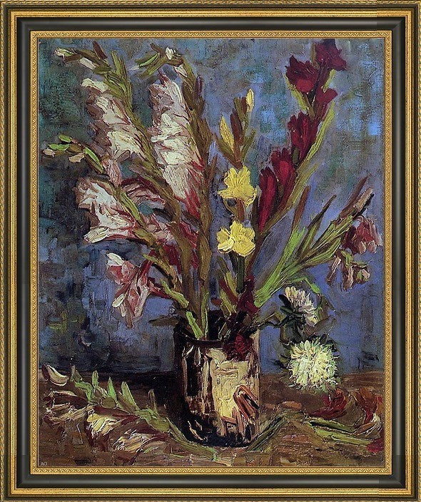 16" x 20" Vincent Van Gogh Vase with Gladioli framed premium canvas print reproduced to meet museum quality standards. Our Museum quality canvas prints are produced using high-precision print technology for a more accurate reproduction printed on high quality canvas with fade-resistant, archival inks. Our progressive business model allows us to offer works of art to you at the best wholesale pricing, significantly less than art gallery prices, affordable to all. This artwork is hand stretched onto wooden stretcher bars, then mounted into our 3 3/4" wide gold finish frame with black panel by one of our expert framers. Our framed canvas print comes with hardware, ready to hang on your wall. We present a comprehensive collection of exceptional canvas art reproductions by Vincent Van Gogh.