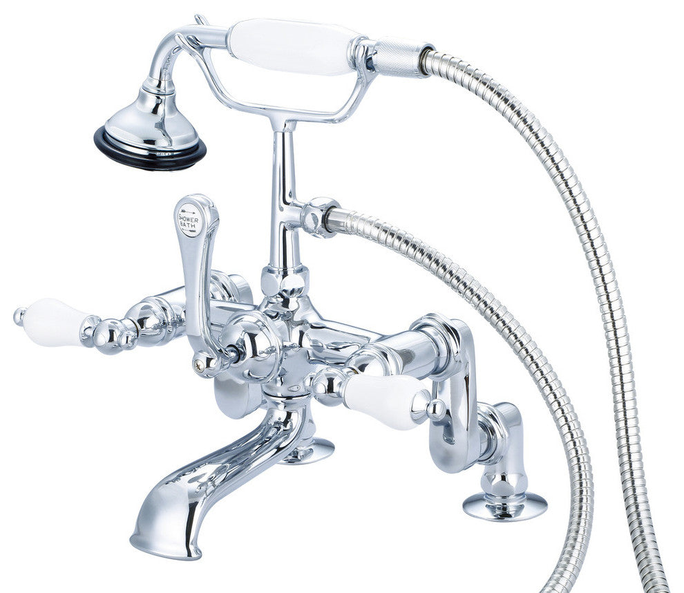 Vintage Adjustable Center Deck Mount Tub Faucet w/Handshower, Lever handles