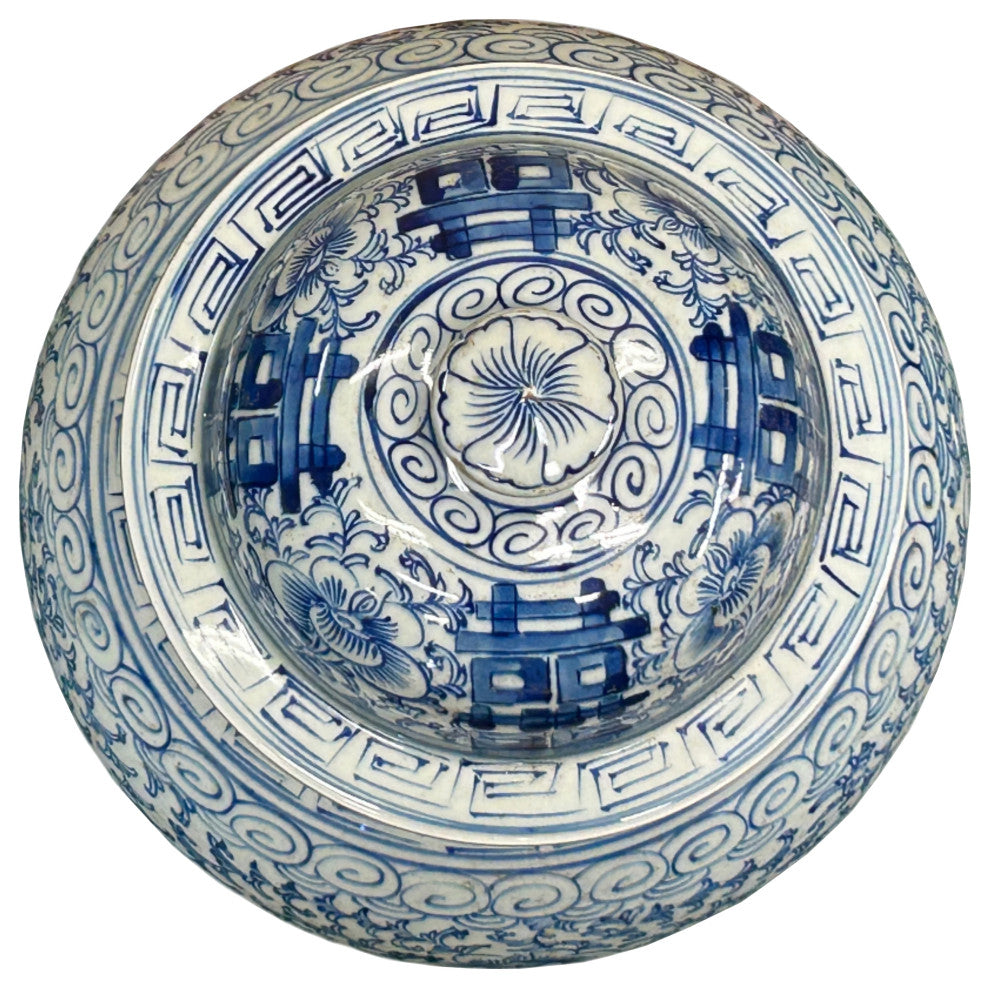 Vintage Blue White Double Happiness Porcelain Temple General Jar Hws4403