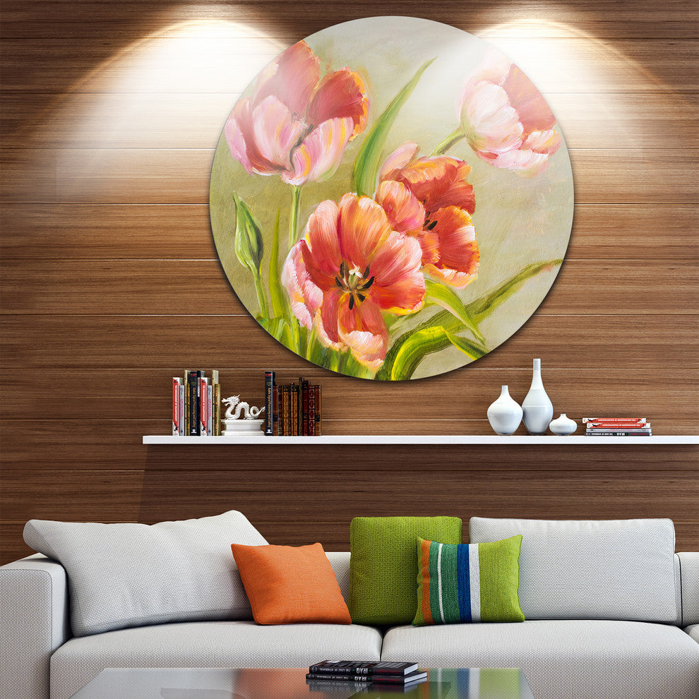 Bring Contemporary Abstraction to your home with this large Circle Metal wall art. This Vintage Red Tulips Metal Artwork makes it the focal point of any room or office.