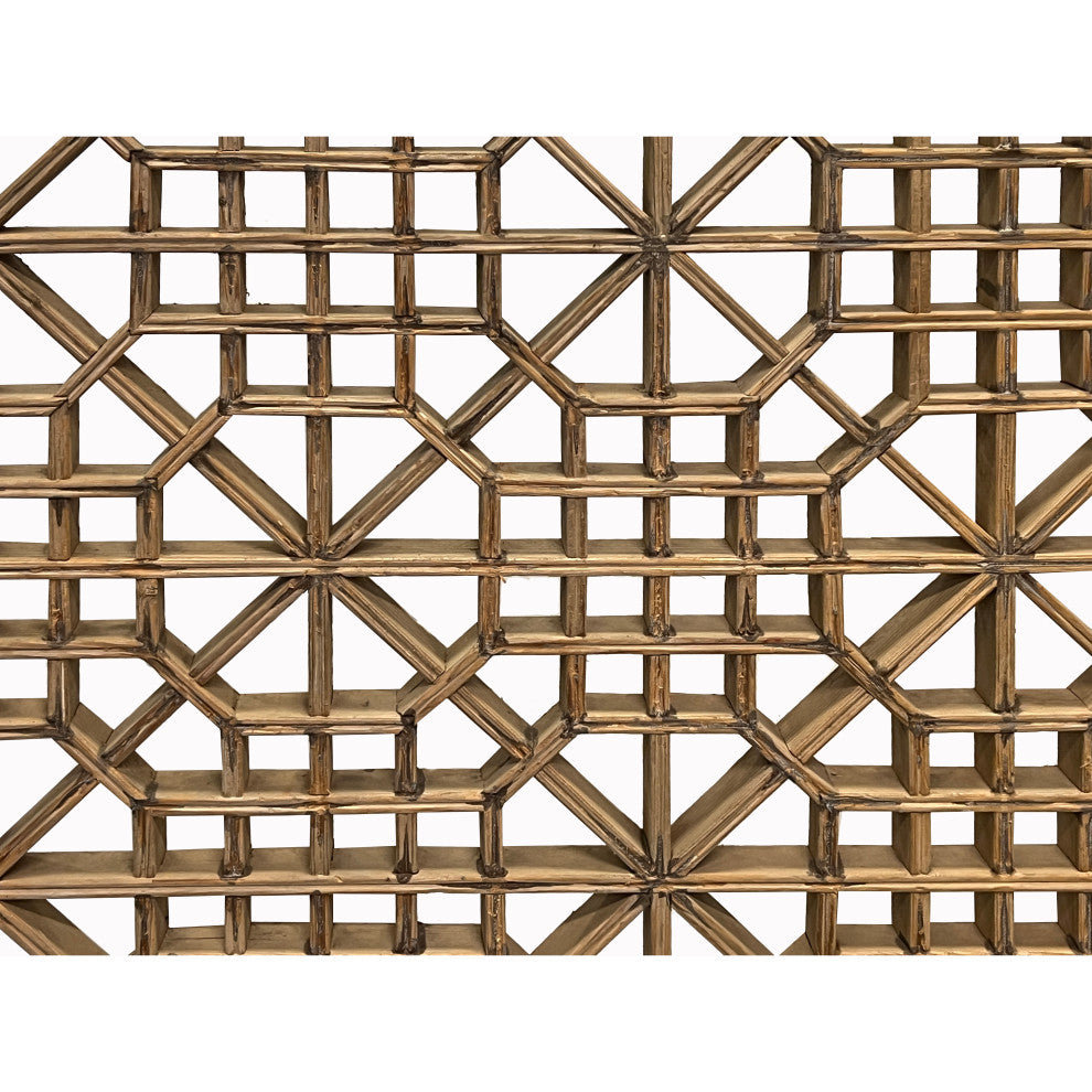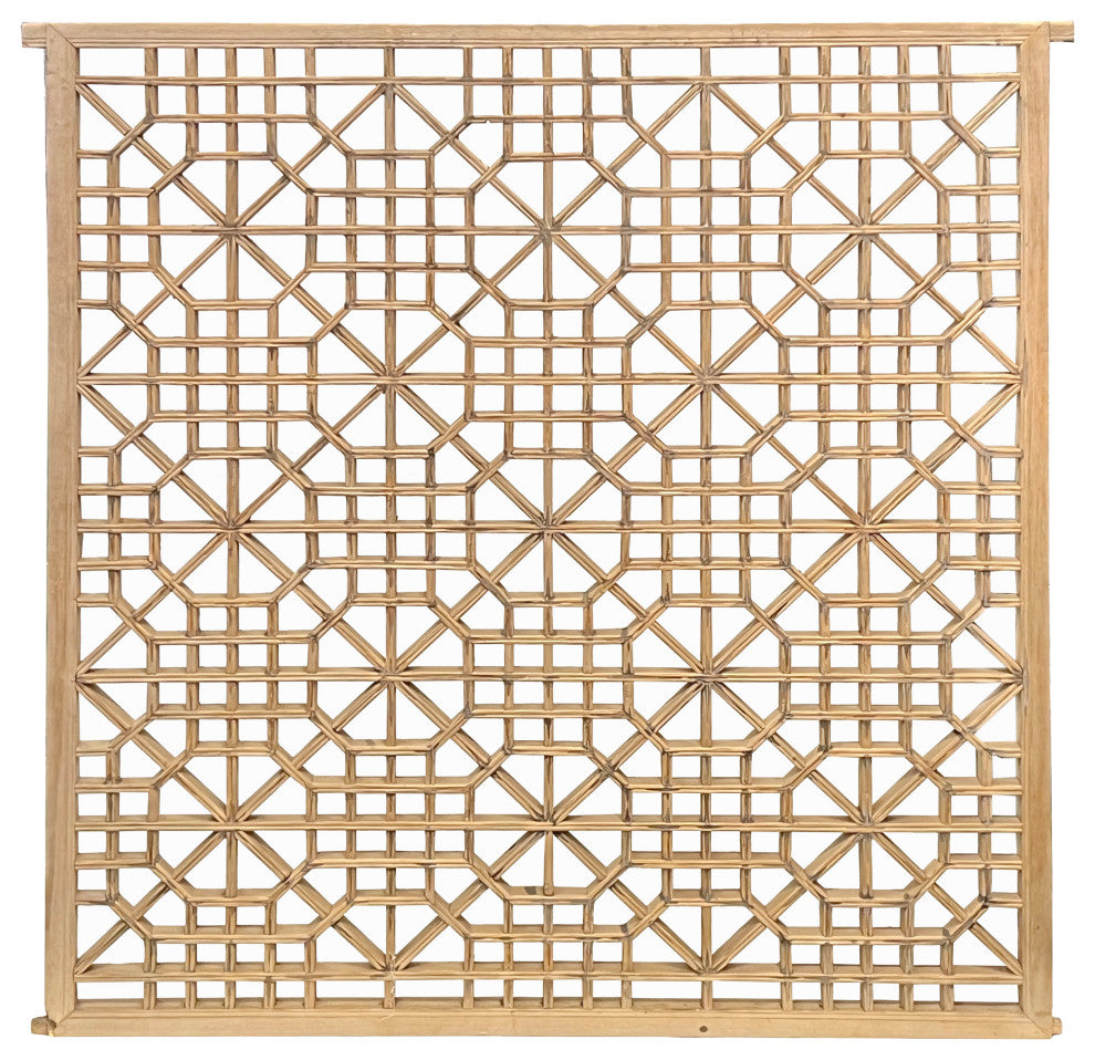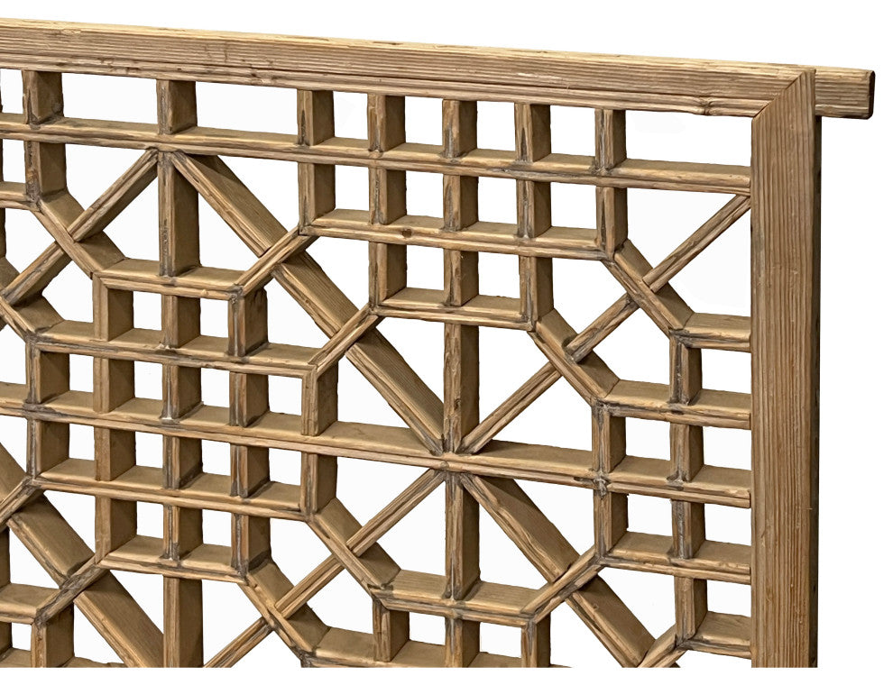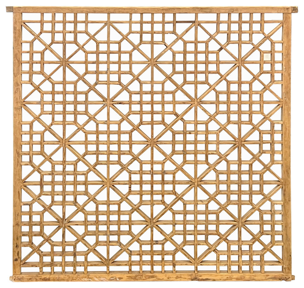 Vintage Restored Oriental Zen Geometric Rustic Raw Wood Wall Panel Hws3348