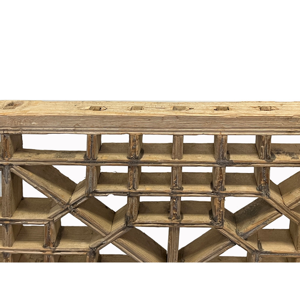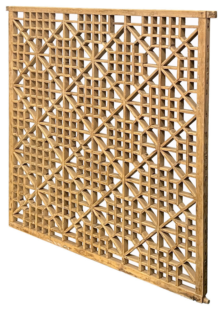 This vintage rectangular wood wall hanging panel features a charming rough wood, light raw wood tone finish, adorned with an array of distinctive wear-out marks that add character and history to the piece. Its design embraces a straightforward yet elegant square geometric pattern. This unique wall decor item combines rustic charm with minimalist sophistication, making it a captivating addition to any space seeking a touch of vintage flair. Perfect for rustic home decor enthusiasts and those appreciating the beauty of aged wood craftsmanship.Dimensions: 45.5" x 42.5" thickness 1.5"Origin: ChinaMaterial: WoodCondition: Vintage style finish, wear-out marksWe offer a flat shipping fee of $295 for customers in the contiguous United States (48 states) for convenient curbside delivery. (Additional shipping costs will apply to customers in New York, Hawaii, Alaska, US Islands, Florida Keywest, or Canada, based on their specific location). The shipping cost includes insurance and handling charges for added protection. For customers in San Francisco or the Bay Area, we provide local delivery at a cost determined by the distance. You can find the exact cost by entering your zip code during checkout. Alternatively, you can pick up your order in-store with no extra shipping fee. If you need extra care and a white-glove experience, we offer a specialized service with a 4-8 week transit time, tailored to your destination. Contact us for a detailed quote on this service. Upon receiving your shipment, please carefully inspect the exterior packaging while the delivery personnel are present. Note any visible damage on the delivery paperwork, as carriers do not typically honor concealed damage claims. Your cooperation in documenting any visible damage is greatly appreciated