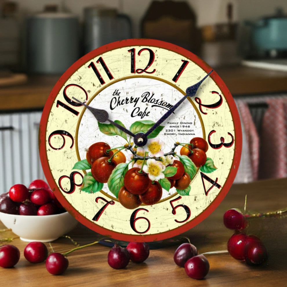 Vintage-Style Cherries Clock, 12 Inch Diameter