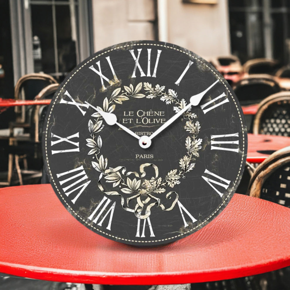 Vintage-Style French Bistro Clock, 12 Inch Diameter