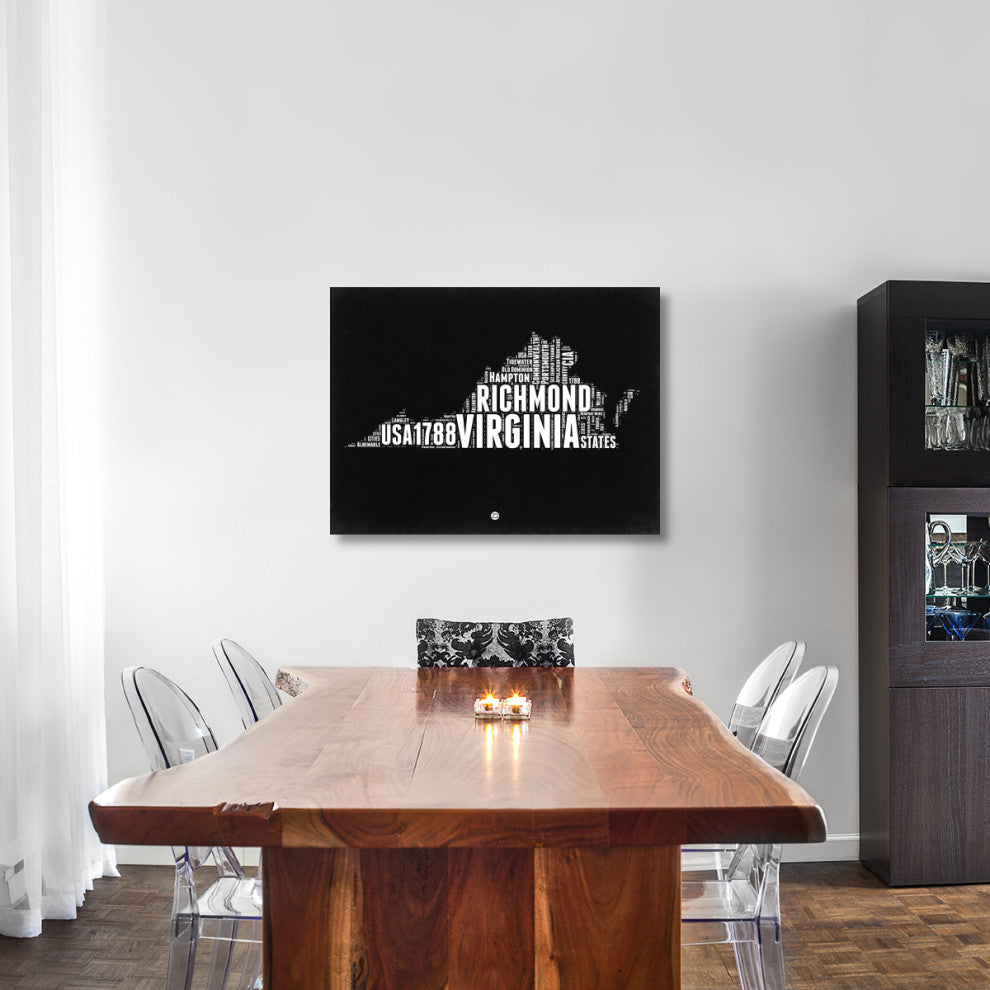 "Virginia Black and White Map" Fine Art Print