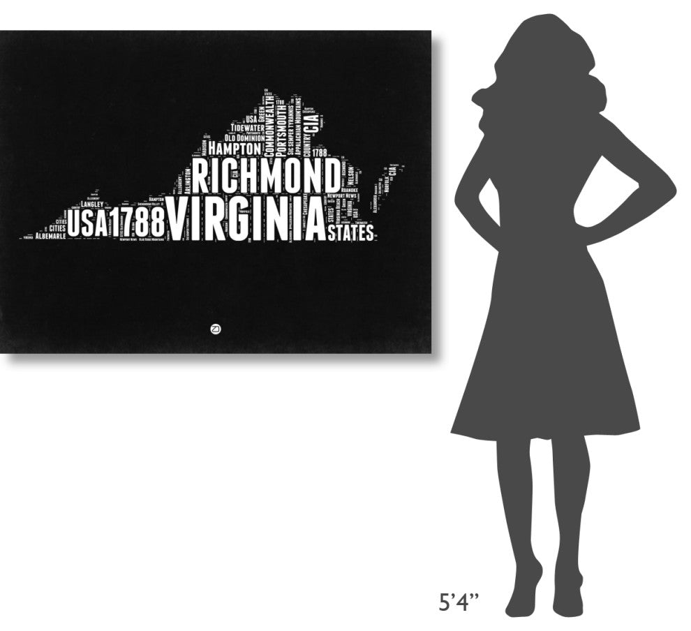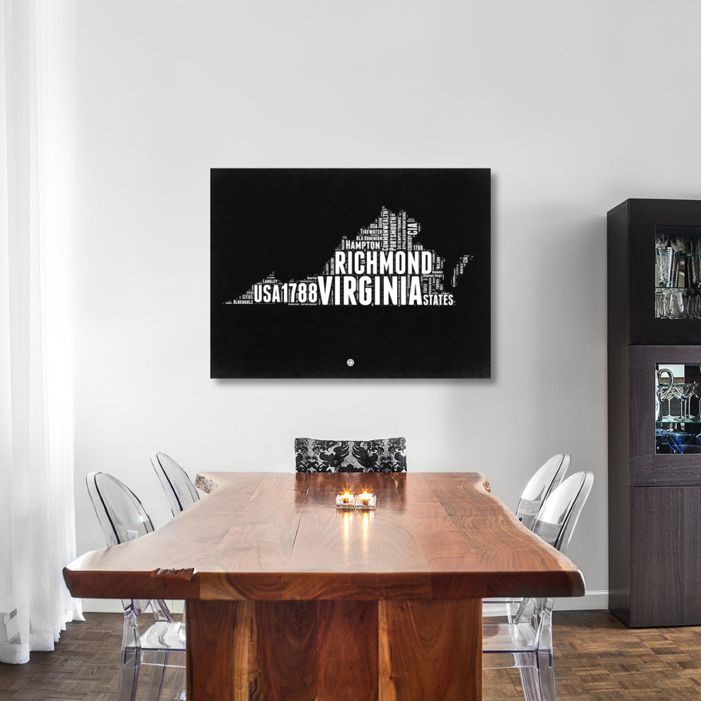 "Virginia Black and White Map" Fine Art Print