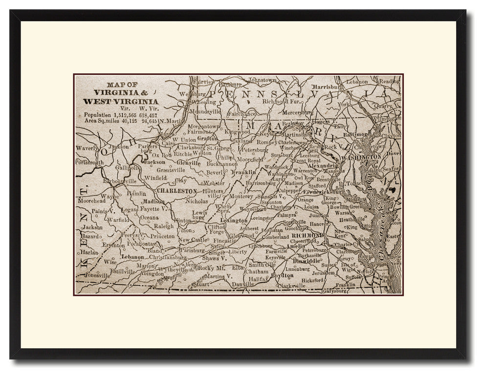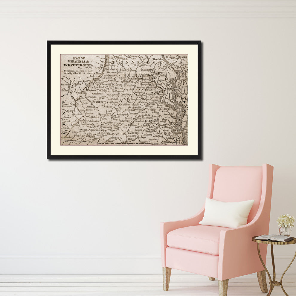 Virginia West Virginia Vintage Sepia Map Canvas Print, 16"x21"