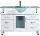 The Vincente vanity''stablishes a strong and solid foundation for any modern bathroom. The vanity features solid oak wood construction with one soft closing door and six storage drawers. The vanity''s finished in a classic espresso and crowned with a safety clear tempered glass basin-countertop. The Vincente set will make a great centerpiece to any bathroom design. Virtu USA has taken the initiative by changing the vanity industry and adding soft closing doors and drawers to their entire product line. The premium soft-closing hardware not only increases the safety of the vanity, but also its lifetime reliability.