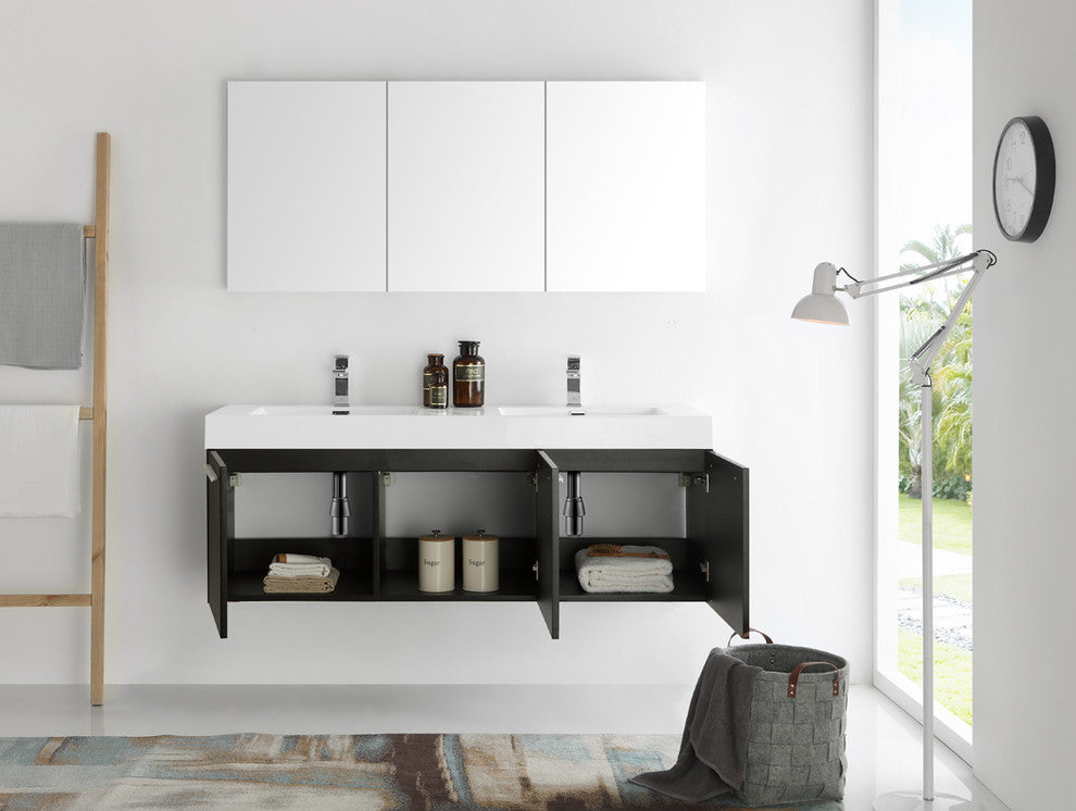Vista 60" Black Wall Hung Double Sink Modern Bathroom Vanity, FFT3111CH