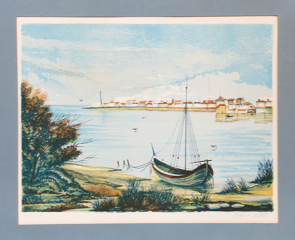 Vitali Orfeo "Moored Sailboat" Lithograph