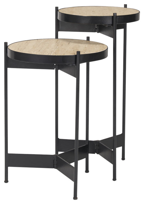 Wade Travertine Marble With Matte Black Metal End Tables