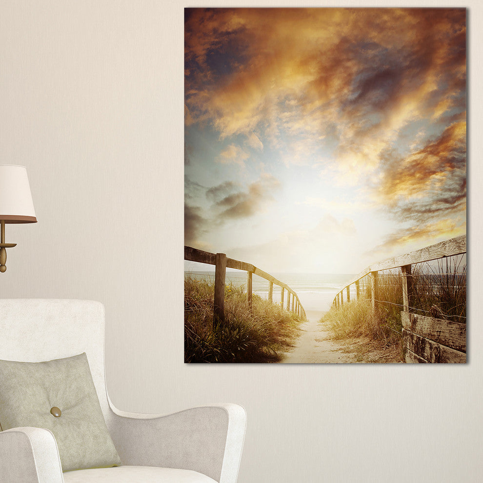 The Walkway Leading to Beach Scene canvas art print is sure to make an impression on anyone who sees it. This artwork is gallery wrapped around a 1-inch solid wood frame and arrives carefully packaged and entirely ready to hang on the wall. Design Art only uses the highest resolution and pigments to ensure a crisp colorful print that is never faded or pixelated. This artwork is sure to be a conversation starter in any home or office.