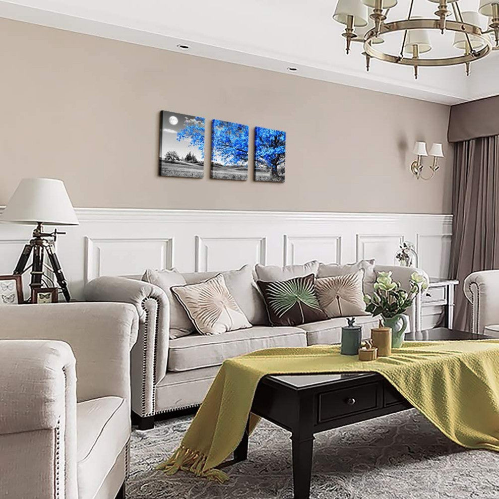Wall Art For Living Room black and white Blue tree moon Canvas Wall Decor
