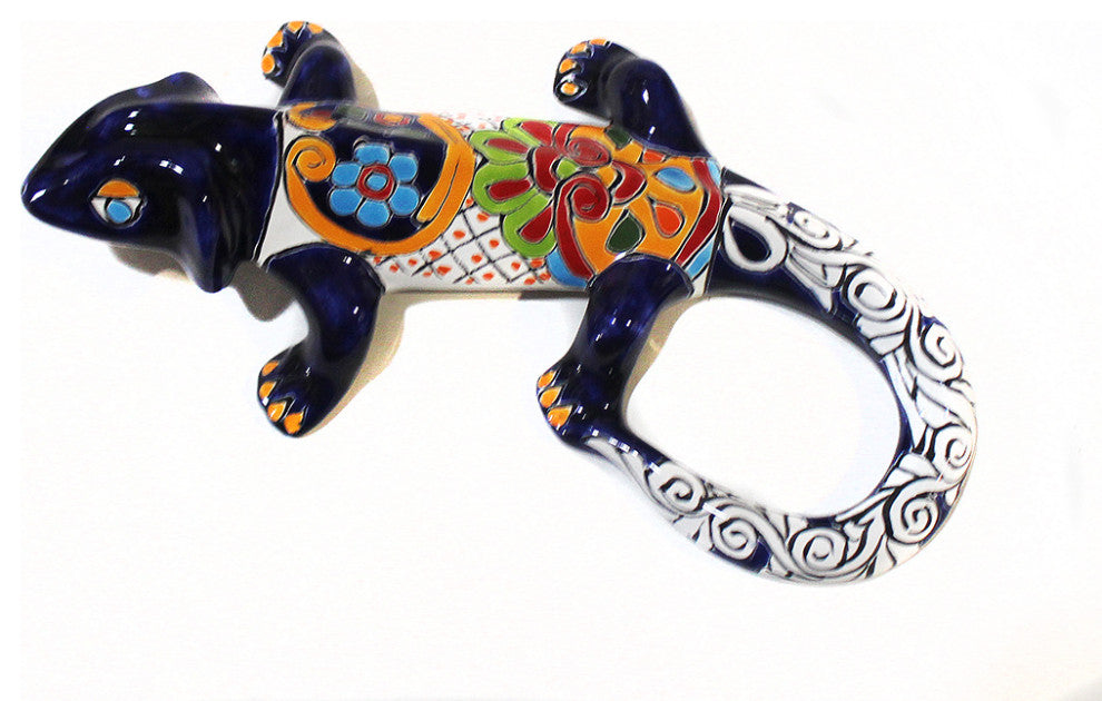 These handpainted iguanas look great on any patio wall or garden. Bright and colorful they will be the talk at your next outdoor cookout.