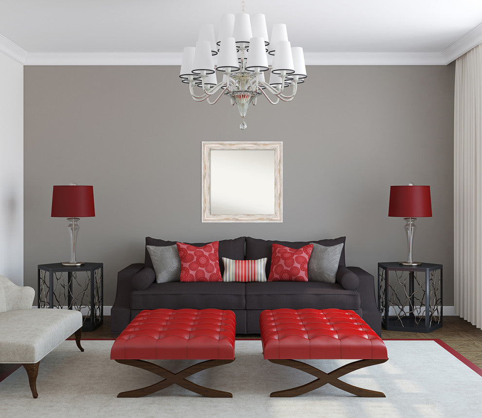 Give your home or office the finishing touch with this custom wood Non-Beveled Wall Mirror framed with the Alexandria White Wash frame. Individually made using traditional custom framing techniques, it has the quality you would expect from your local frame shop. It holds its value with premium finishing that can be appreciated up close.