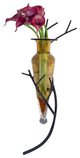 Wall Mount Glass Vase on Twig Design Metal Stand, Amber