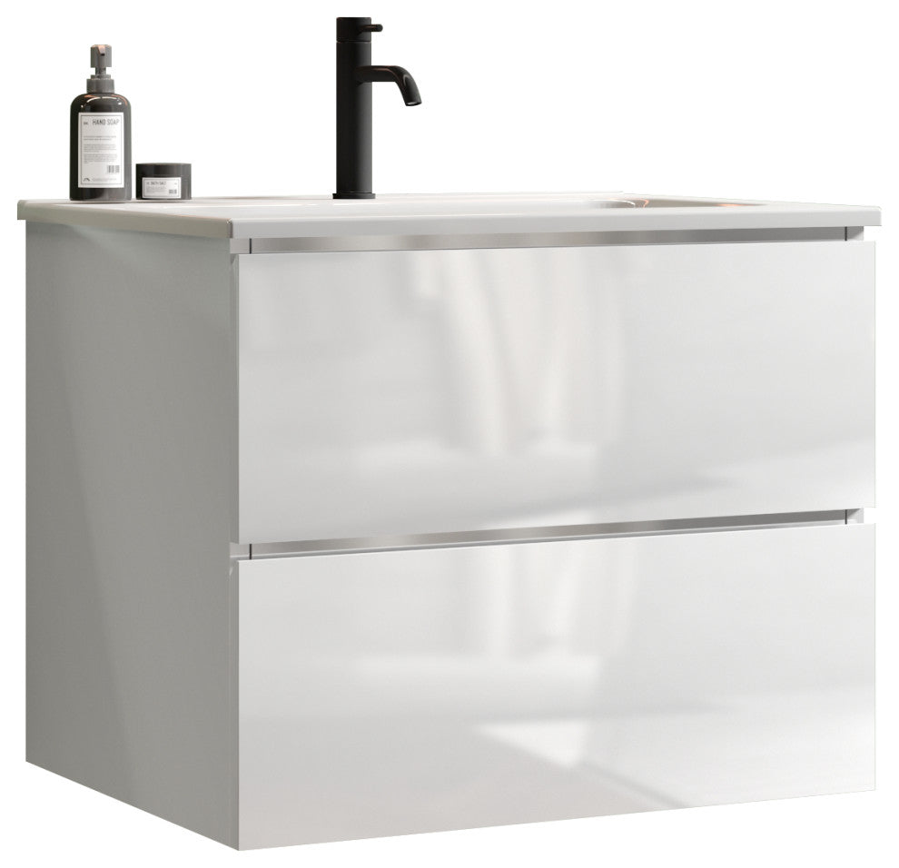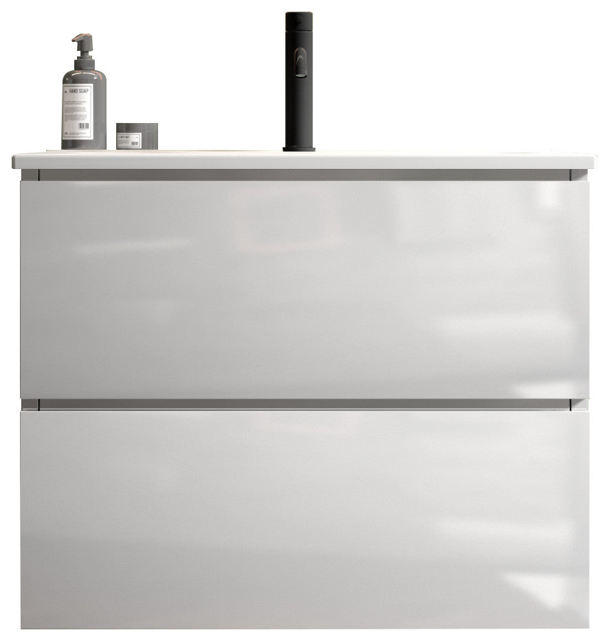 Wall-Mounted Bathroom Vanity Set with Ceramic Sink with one faucet hole, Glossy White