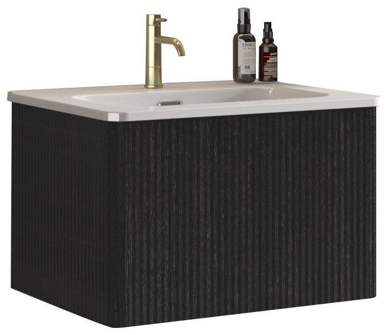 Wall-Mounted Bathroom Vanity Set with White Ceramic Sink, 24"