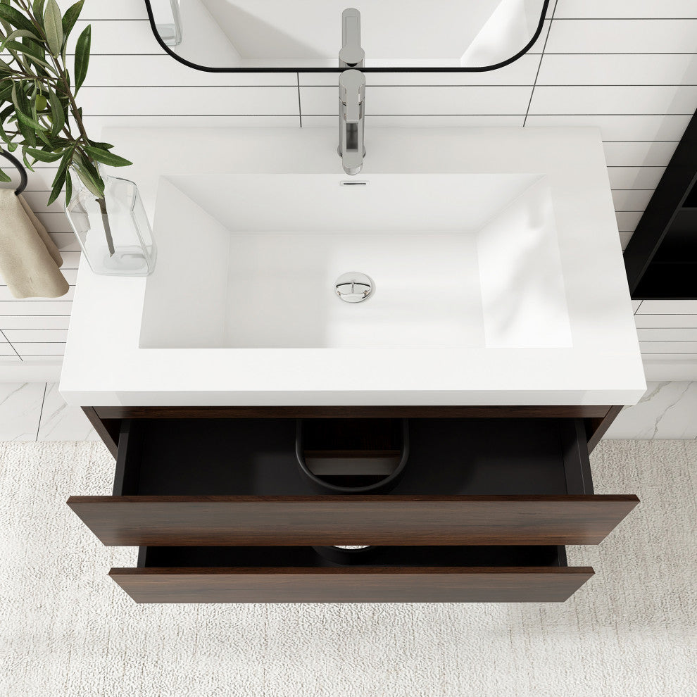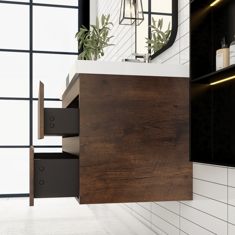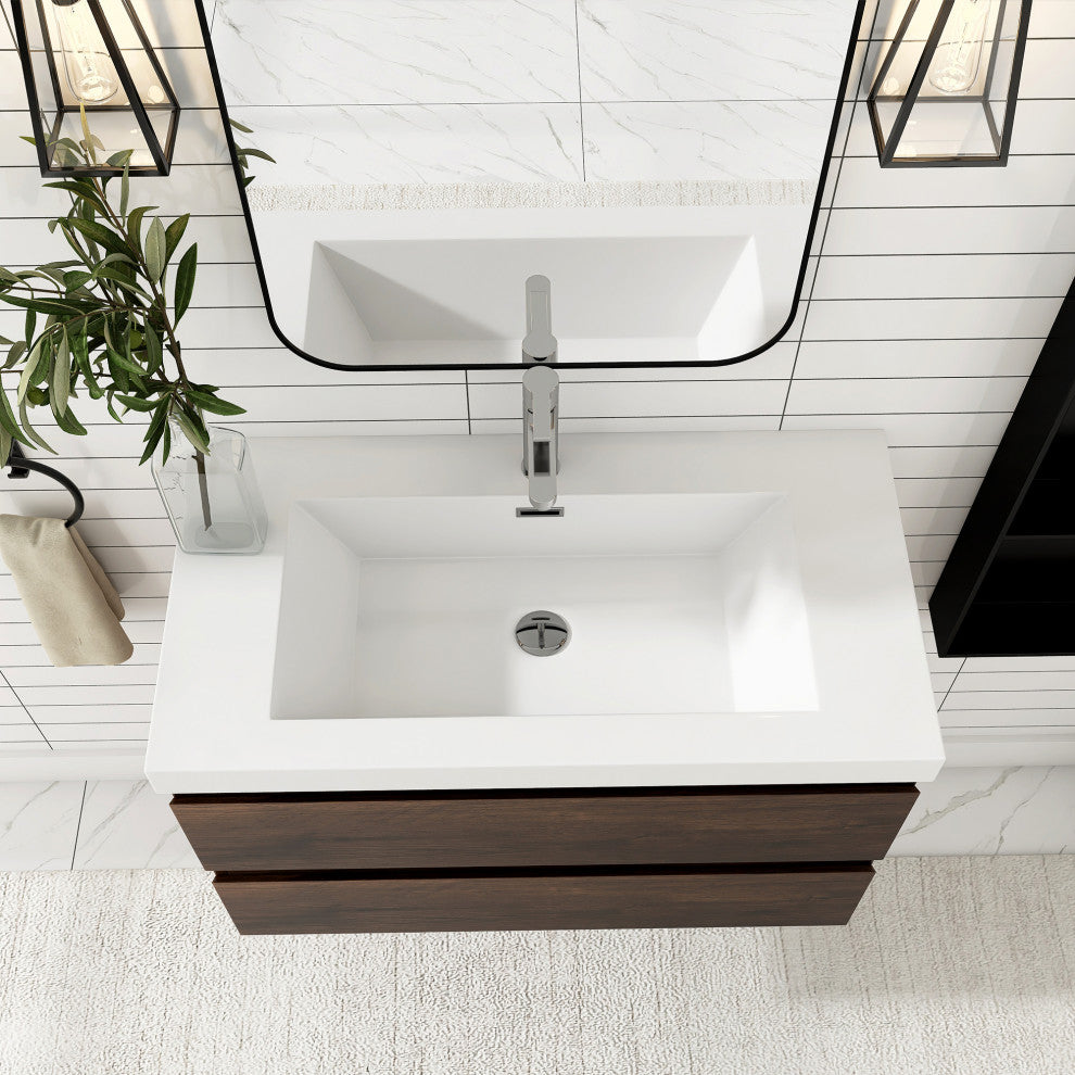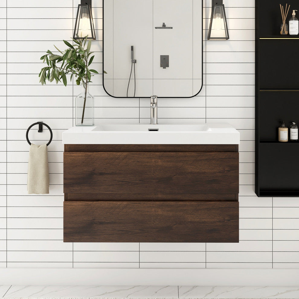 Wall-Mounted Bathroom Vanity with Integrated Resin Sink, Rose Wood, 36in.