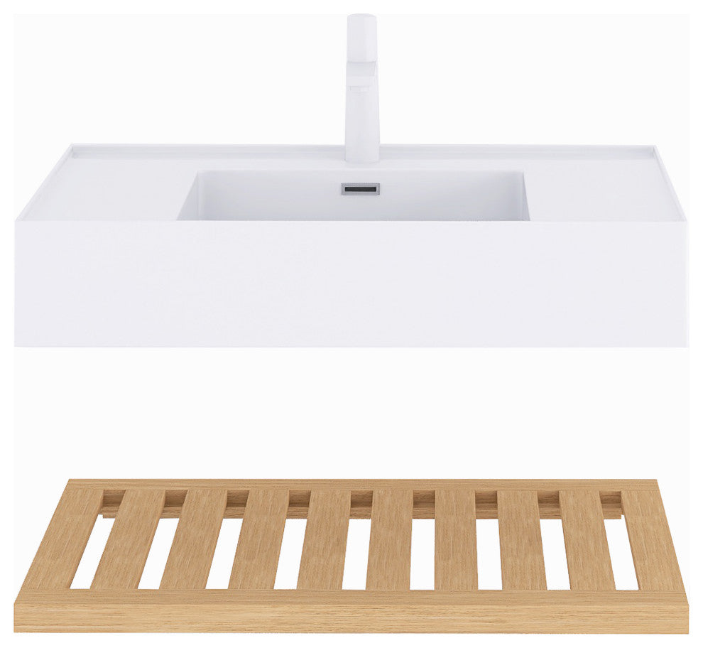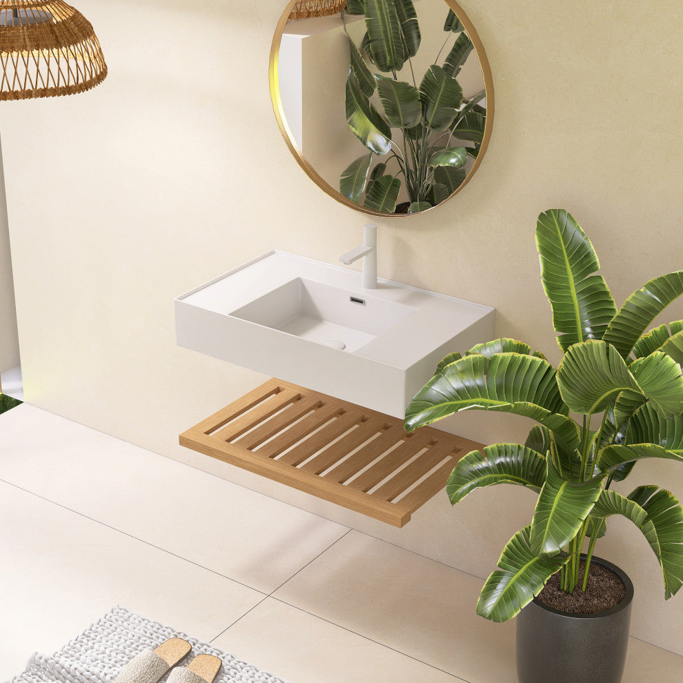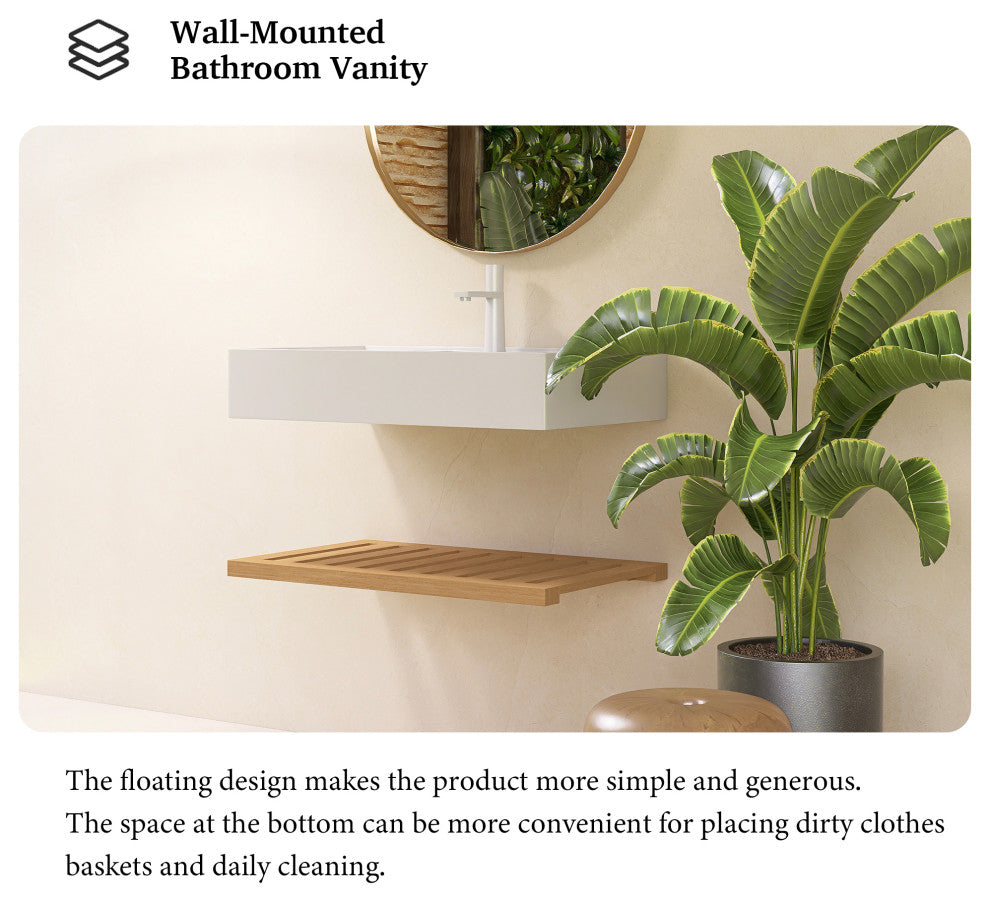 Wall-Mounted Bathroom Vanity With White Rectangular Acrylic Integrated Basin, 30"