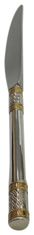This pattern of fine sterling silver is evocative of the hand woven baskets and nets of the Aegean Sea, hand crafted by the fishermen of the early mediteranean era, said to be the origin of civilization. It is adorned with 24K gold accents. These pieces are all brand new and have never been used.