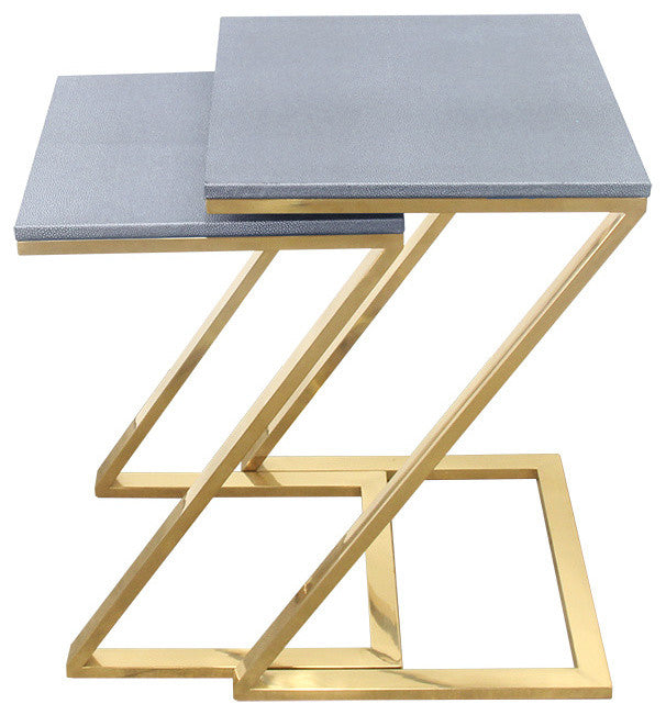 Walter Z-Leg Nesting Tables, Faux Shagreen and Gold Metal, 2 Piece Set